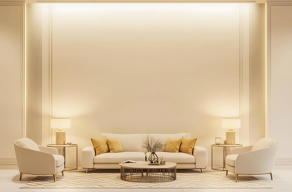 เข้ากันได้ดีกับแสงไฟโทนอุ่น (Warm Light) ซึ่งจะช่วยขับสีครีมให้ดูนุ่มนวลและทำให้ผิวสัมผัสของโลหะสีทองดูเปล่งประกาย