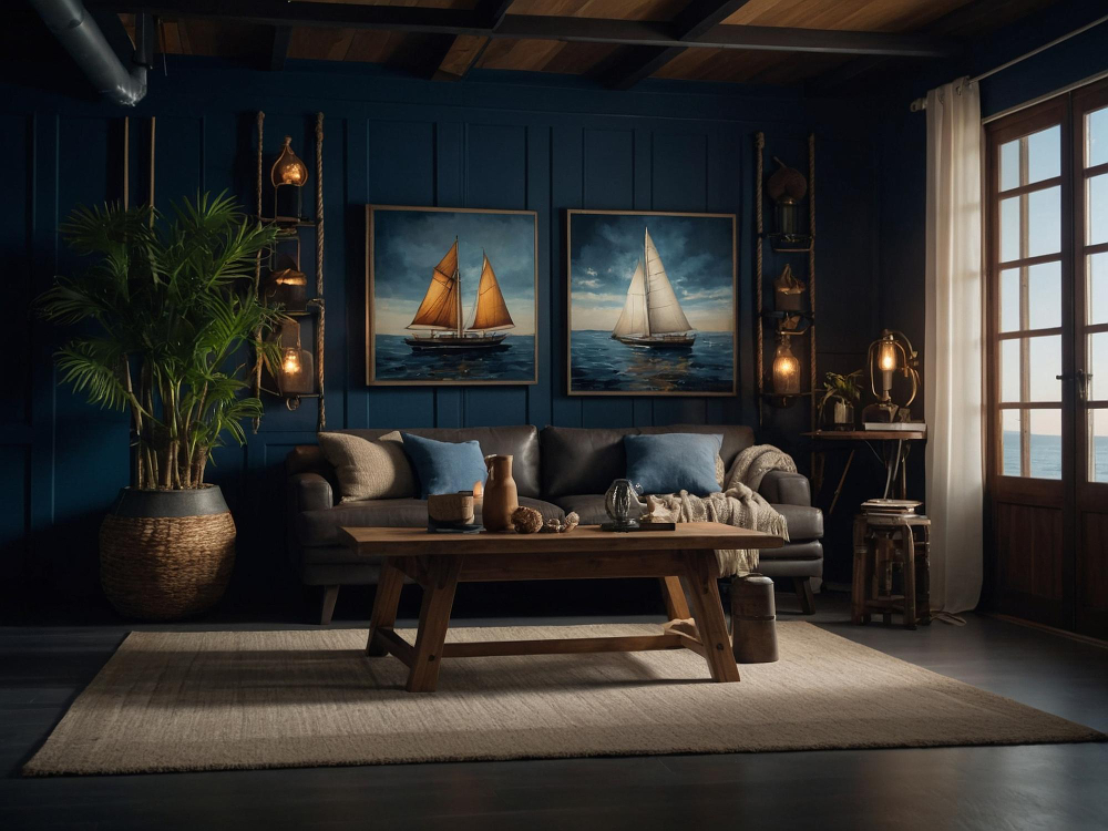 - โลหะ: การใช้สีน้ำเงินเข้มคู่กับโลหะสีทอง หรือทองเหลือง (Brass) จะยกระดับความหรูหราให้ดูคลาสสิกและมีมิติยิ่งขึ้น
