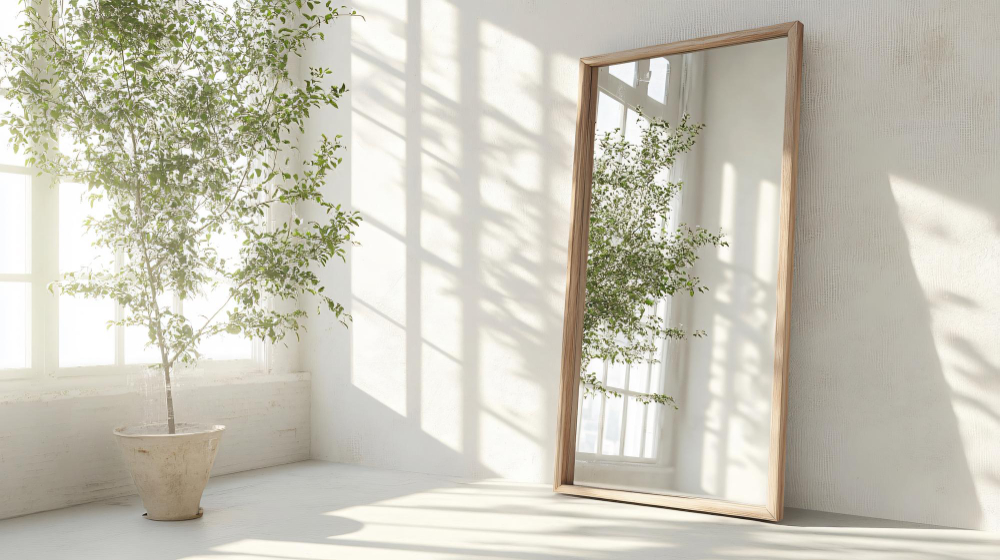 • กระจกช่วยกระจายแสง: การใช้กระจกเงาหรือโต๊ะกระจก โดยเฉพาะการจัดวางกระจกตั้งฉากกับหน้าต่าง จะช่วยเด้งแสงไปยังมุมอื่น ๆ ที่มืดของห้องได้ ทำให้แสงเดินทางเข้าลึกถึงตัวบ้านมากขึ้นโดยไม่ต้องพึ่งพาไฟฟ้า